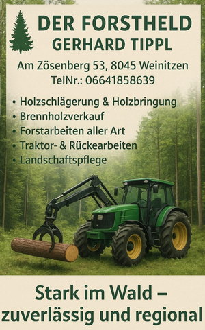 - Fotos schicken: Damit ich mir ein genaues Bild machen kann, schicken Sie mir gerne ein paar Fotos des Baumes oder der Bäume. WhatsApp-Nachricht oder eine E-Mail office(at)forstheld(dot)at